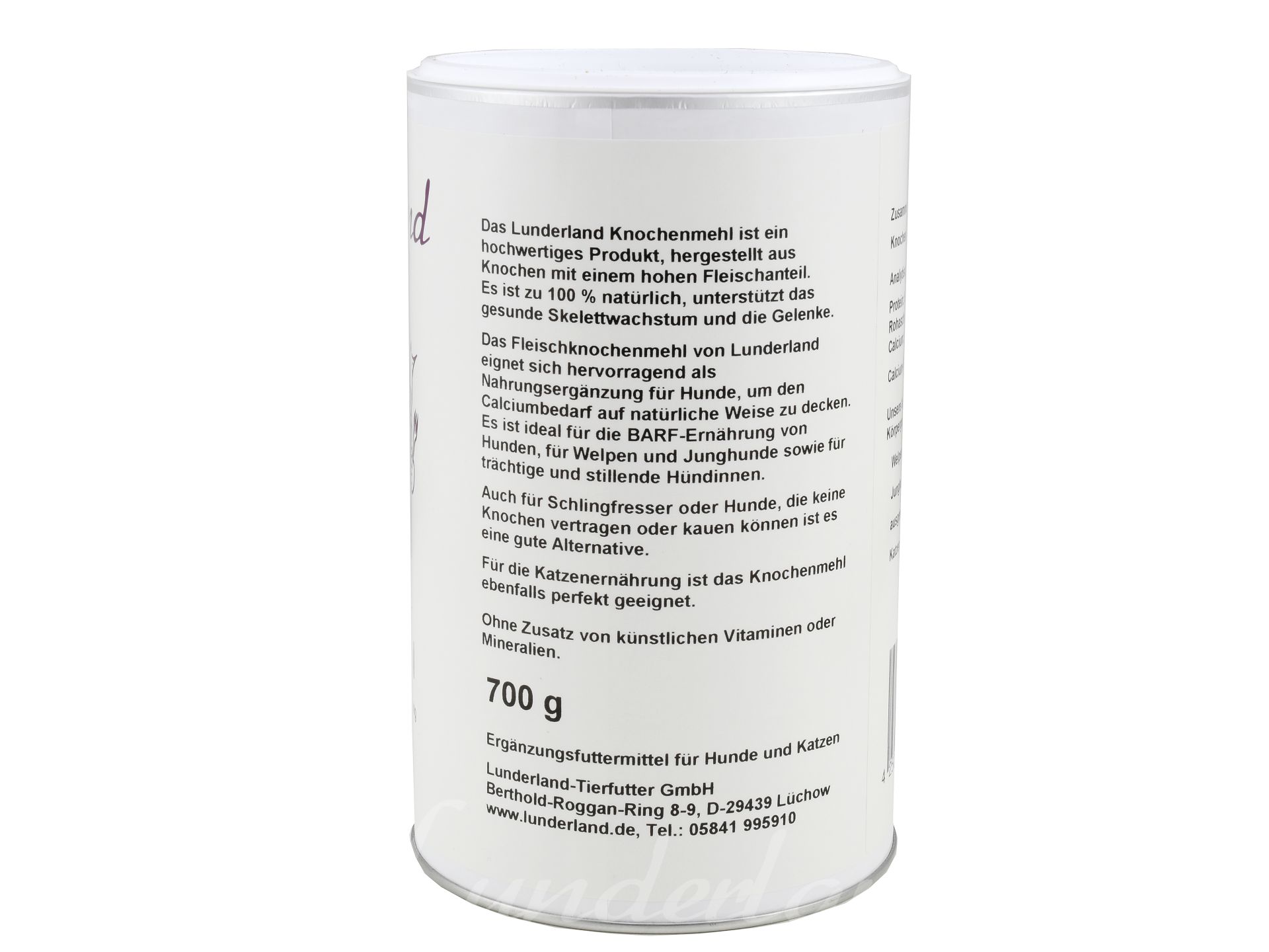 La farine d’os de viande Lunderland est un complément alimentaire naturel idéal pour les chiens et les chats, permettant de couvrir les besoins en calcium de manière équilibrée et naturelle.