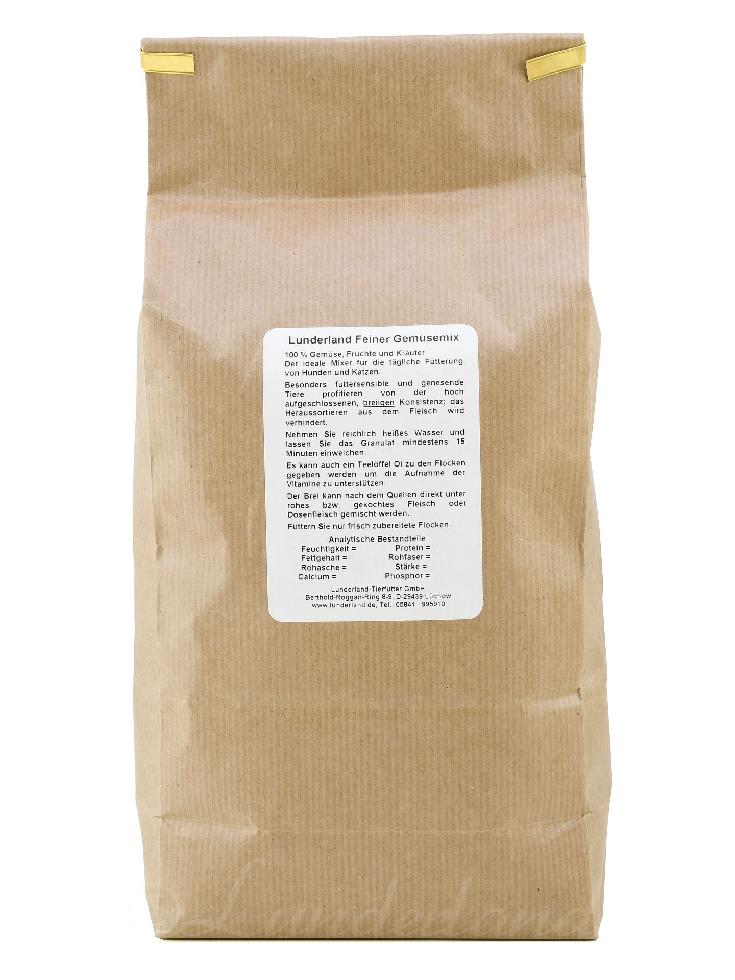 Le Mélange de légumes fins Lunderland est composé de légumes, fruits et herbes digestes. Grâce à sa granulation très fine, il forme une texture homogène une fois réhydraté : impossible pour les animaux de trier les morceaux !