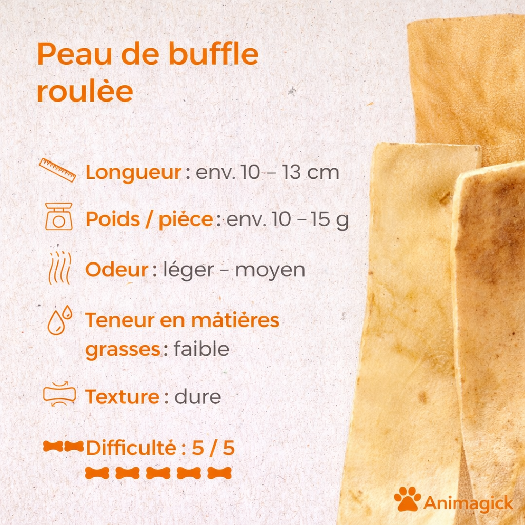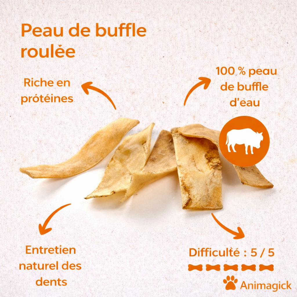 👉 100 % peau de buffle, sans conservateurs, délicatement transformée pour préserver goût et qualité.