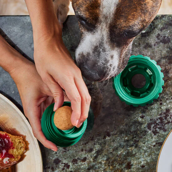 Il suffit de le dévisser, de le remplir avec un Pop ou la friandise préférée de votre chien… et le plaisir de lécher commence pour longtemps.